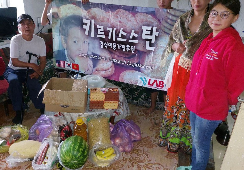GCF (Global Children Foundation)와 협업으로 키르기스스탄의 형편이 어려운 가정, 편부모 자녀들 등에게 생활 용품과 음식을 제공하고 있습니다. 매년 50여 가정을 직접 방문하여 사랑을 나누고 있습니다. 빈부격차가 심한 현지에서 조그마한 후원이라도 큰 힘이 되고 있습니다.